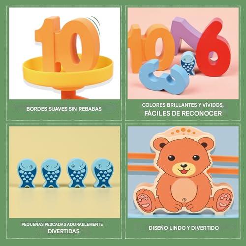 Juego Educativo Montessori de Equilibrio - Convierte el aprendizaje en un juego Incluye balanza de 33 cm x 12 cm, 19 peces, 10 números 3D y 30 tarjetas didácticas🎁SOLO POR HOY 40%DCTO